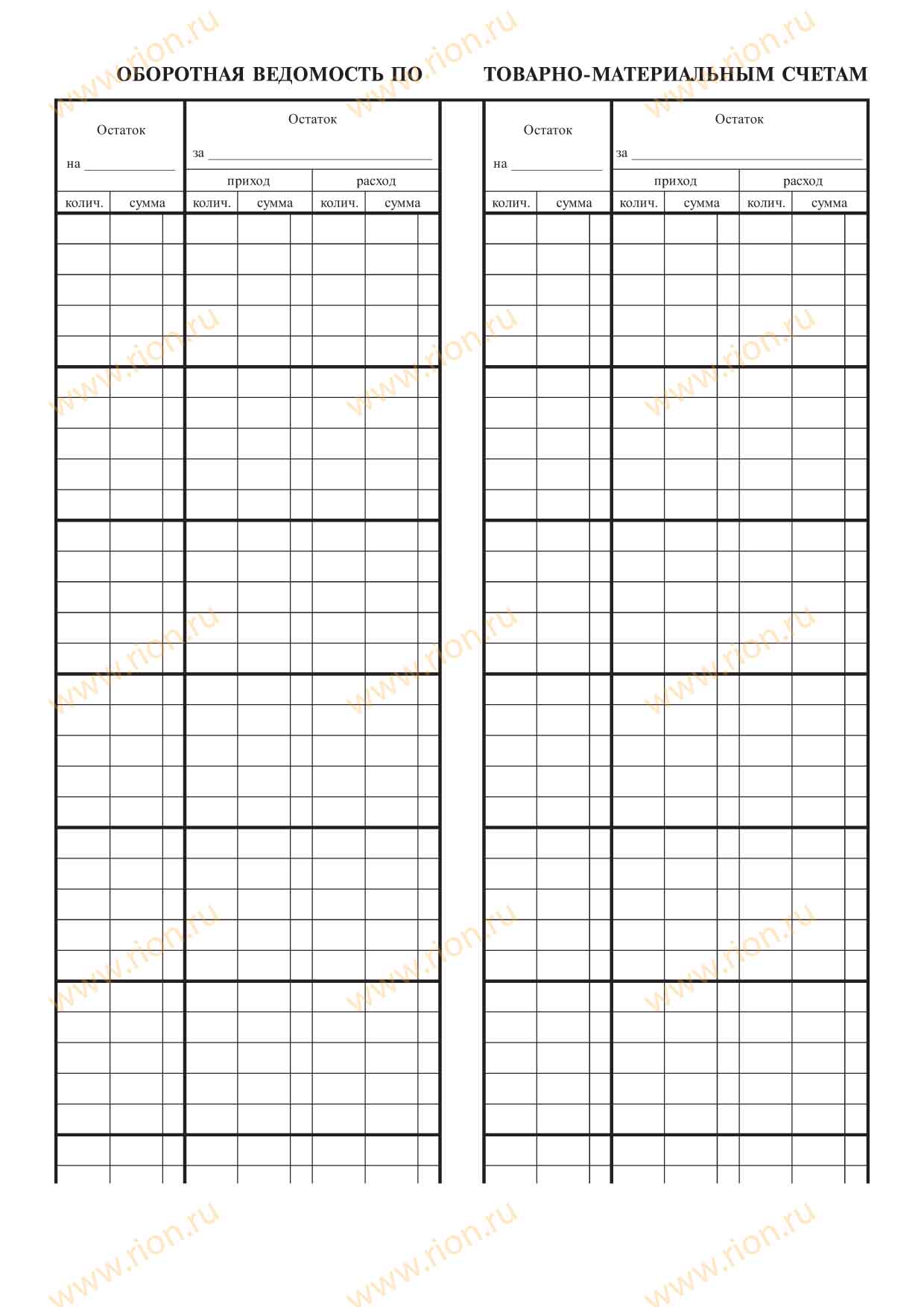 Оборотная ведомость по товарно-материальным счетам (вкладыш)