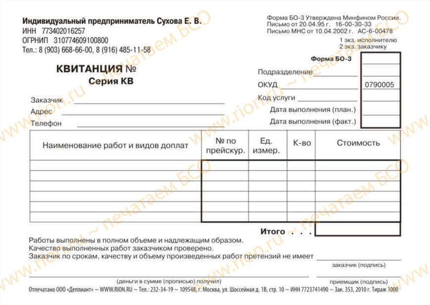Вы можете заказать печать аналогичного бланка строгой отчетности, с изменениями, отвечающими требованиям вашей работы