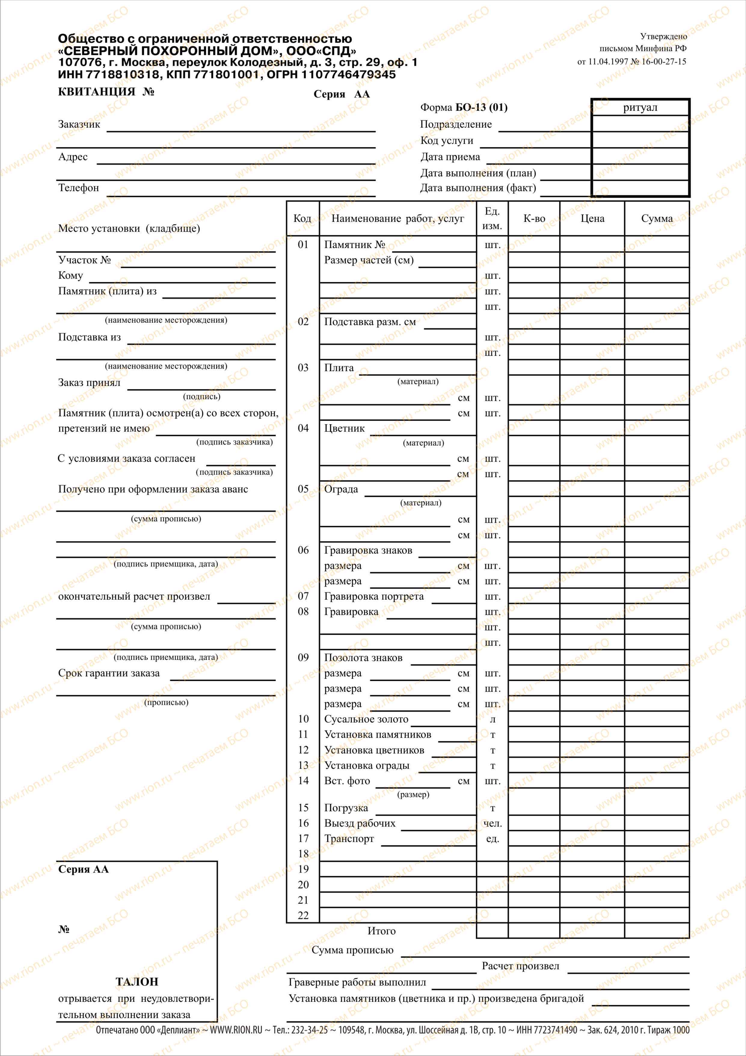 Область применения: ритуал Типовая форма: БО-13(01). Размер: 420x594.