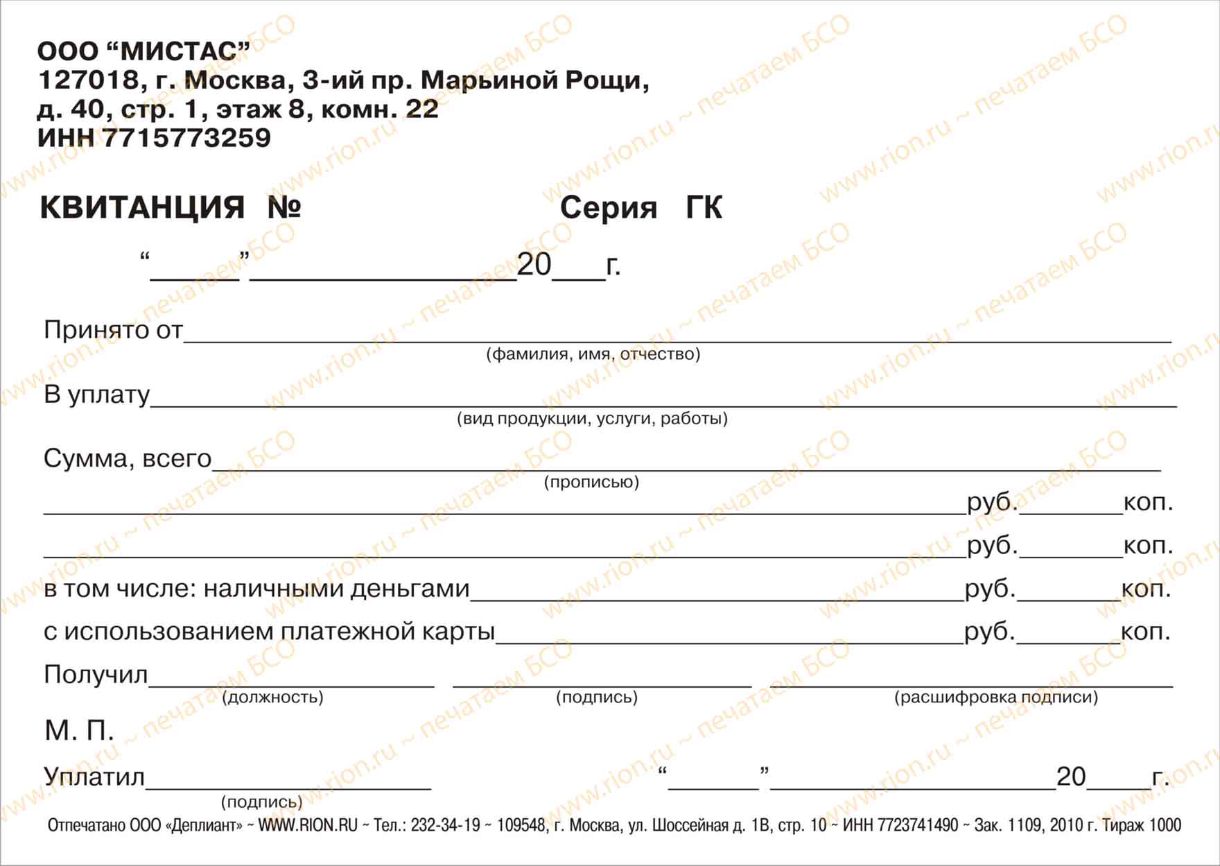 Образец бланка строгой отчетности, отпечатанного в нашей типографии.