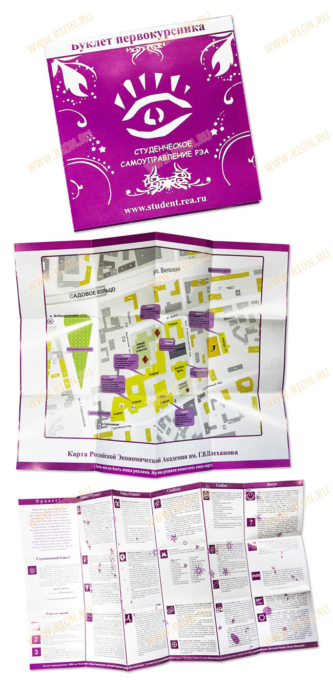 Офсетная печать А2, 4+4. Фальцовка - 2 горизонтальных сгиба и 3 вертикальных. Бумага мелованная глянцевая 150 г/кв.м.