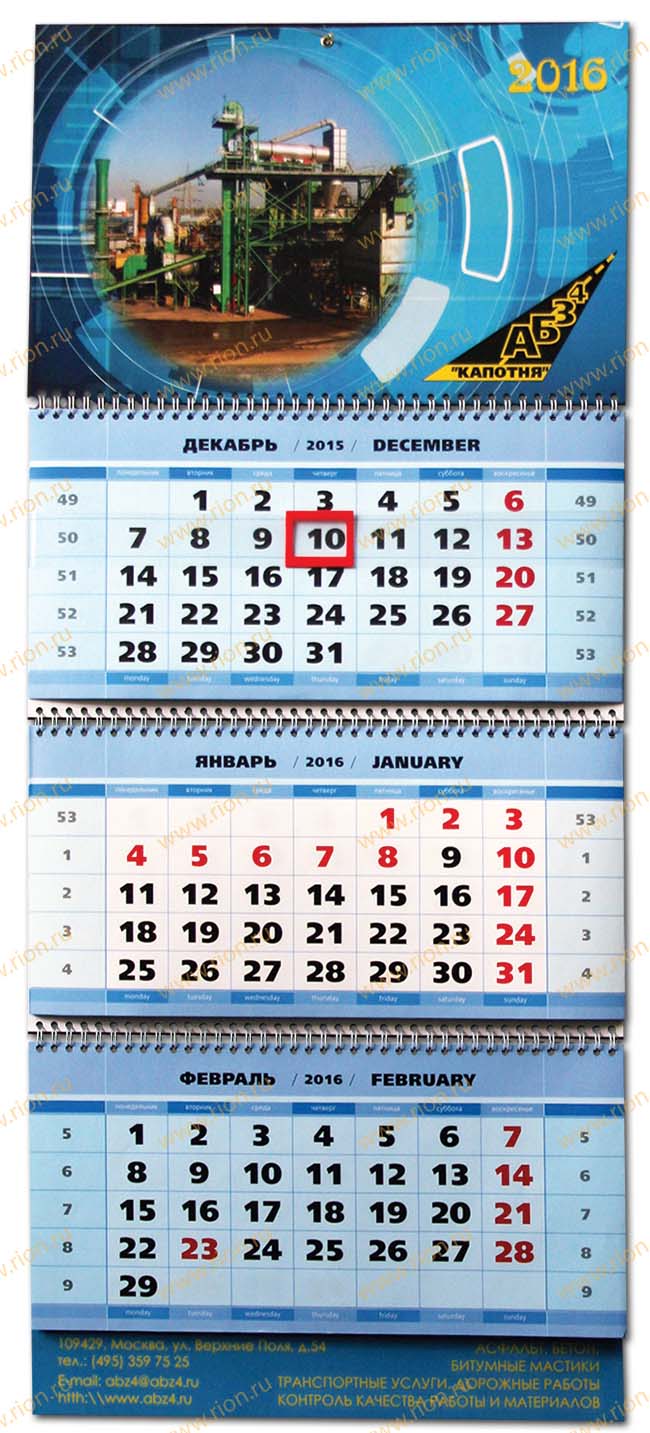 Квартальный календарь 2016 - АБЗ4 Капотня